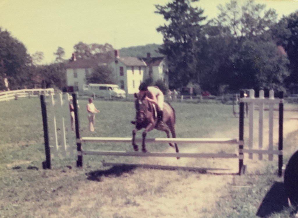As a little girl I dreamed of horses. I was not quite as horse-crazy as Velvet Brown in National Velvet–but I was close. I had magazine clippings of Secretariat and Northern Dancer and all of the greats taped to the carnation pink walls of my bedroom. My Malibu Barbies rode “Dancer,” their brown plastic horse. Truly, my dreams were so vivid, climbing often onto the back of a silver horse and picking up speed to a gallop. I awoke one morning after dreaming that my Dad had told me in the middle of the night that he won a pony at the church raffle. It couldn’t be true, could it? I walked into the kitchen that morning and Dad was up, smiling–it certainly was true! We drove later in the afternoon to see the pony with my friend Amy and her Mom, who would board the pony for me. I would work on her farm in order to pay for that board.